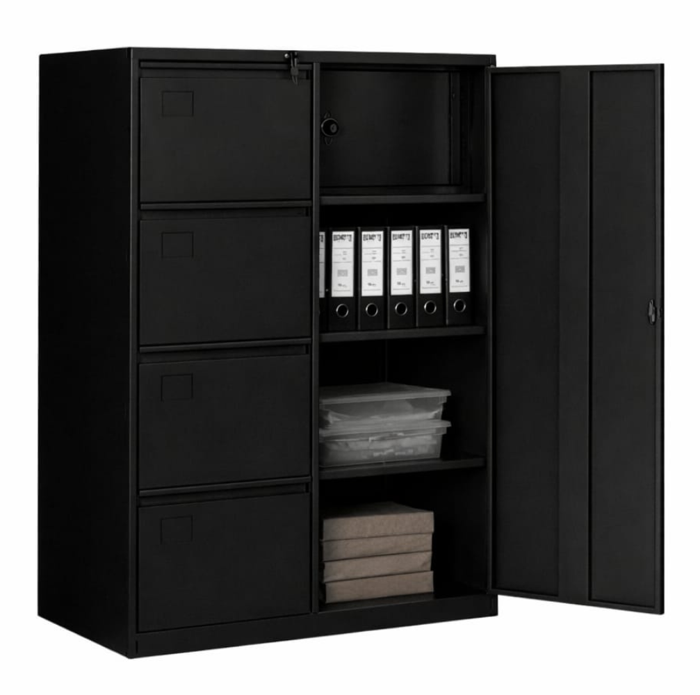 Archivo vertical de 4 gavetas combinado en metal, pintura en polvo secada al horno.