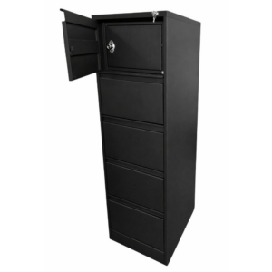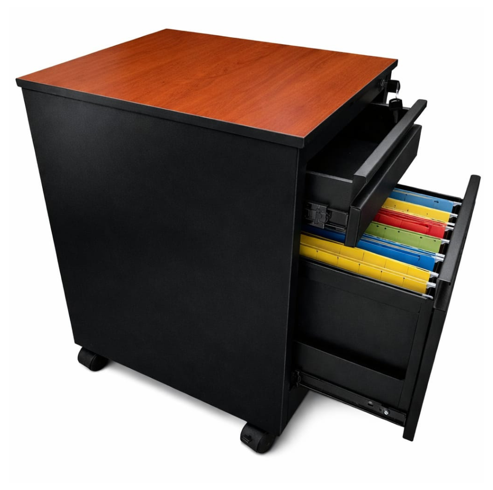 Archivo móvil tipo robot de 2 gavetas, top en melamina y base de metal, pintura en polvo secada al horno.