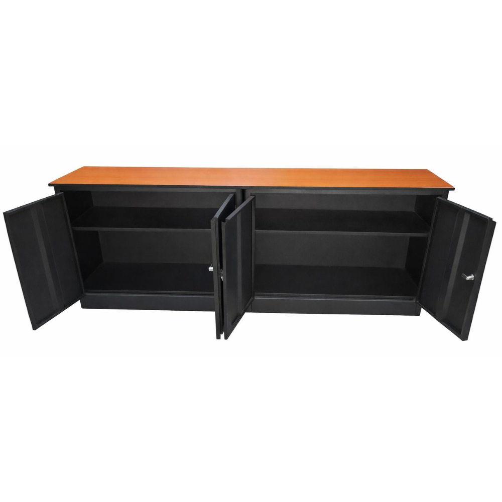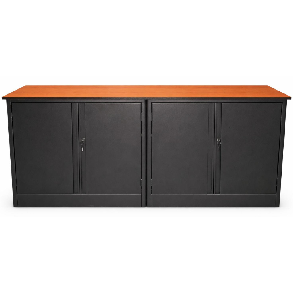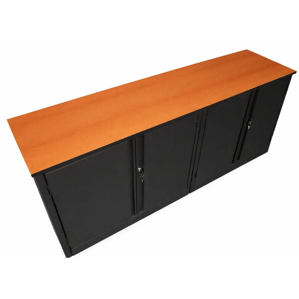 Credenza de 2 cuerpos de metal ideal para oficina o área administrativa. Cuenta con un diseño moderno y elegante, con estructura metálica resistente y cubierta tipo madera. Ofrece amplio espacio de almacenamiento interno para documentos, papelería o equipo de oficina, manteniendo el espacio ordenado y profesional.